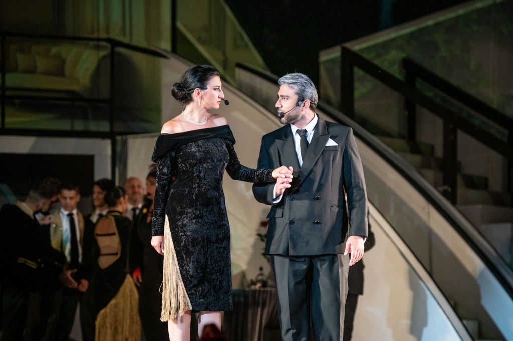 Хитовият спектакъл на Варненската опера „Калас и Онасис“ пристига на сцената на НДК в София на 13 декември и се включва в програмата на ежегодния Новогодишен музикален фестивал. Операта-мюзикъл на композитора Христос Папагеоргиу направи световната си премиера през лятото, за да отбележи 100-годишнината от рождението на най-великия глас – оперната дива Мария Калас.