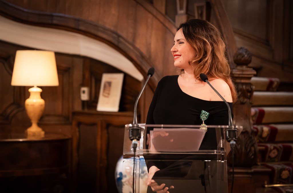 „Без никакво колебание мога да кажа, че любовта ми към Франция и нейната култура се случи мигновено, от пръв поглед – със силна страст и отдаденост към изкуството на тази велика страна и нация. Тази потребност да черпя от френската култура е като един фонтан на неспирно вдъхновение и артистична свобода, от които винаги ще имам нужда за моите творчески избори и търсения. Вълнението ми днес да стоя пред всички вас е толкова силно, защото това отличие носи у себе си освен признание и голяма отговорност – да бъда избрана като един от посланиците за разпространението на френската култура и изкуство по света“, сподели примата.