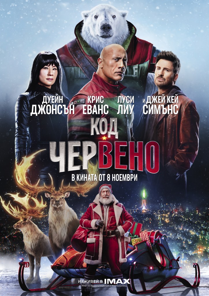 Код: Червено! Пригответе се за екшън приключение чак до Северния Полюс в търсене на Дядо Коледа. Новият филм на Джейк Касдан, ни отвежда на неповторимо пътешествие, заедно с актьорите Дуейн Джонсън, Крис Еванс, Луси Лиу и Джей Кей Симънс. „Код: Червено!“, създаден от режисьора на „Джуманджи“, е вече в кината на 2D, IMAX и 4DX.