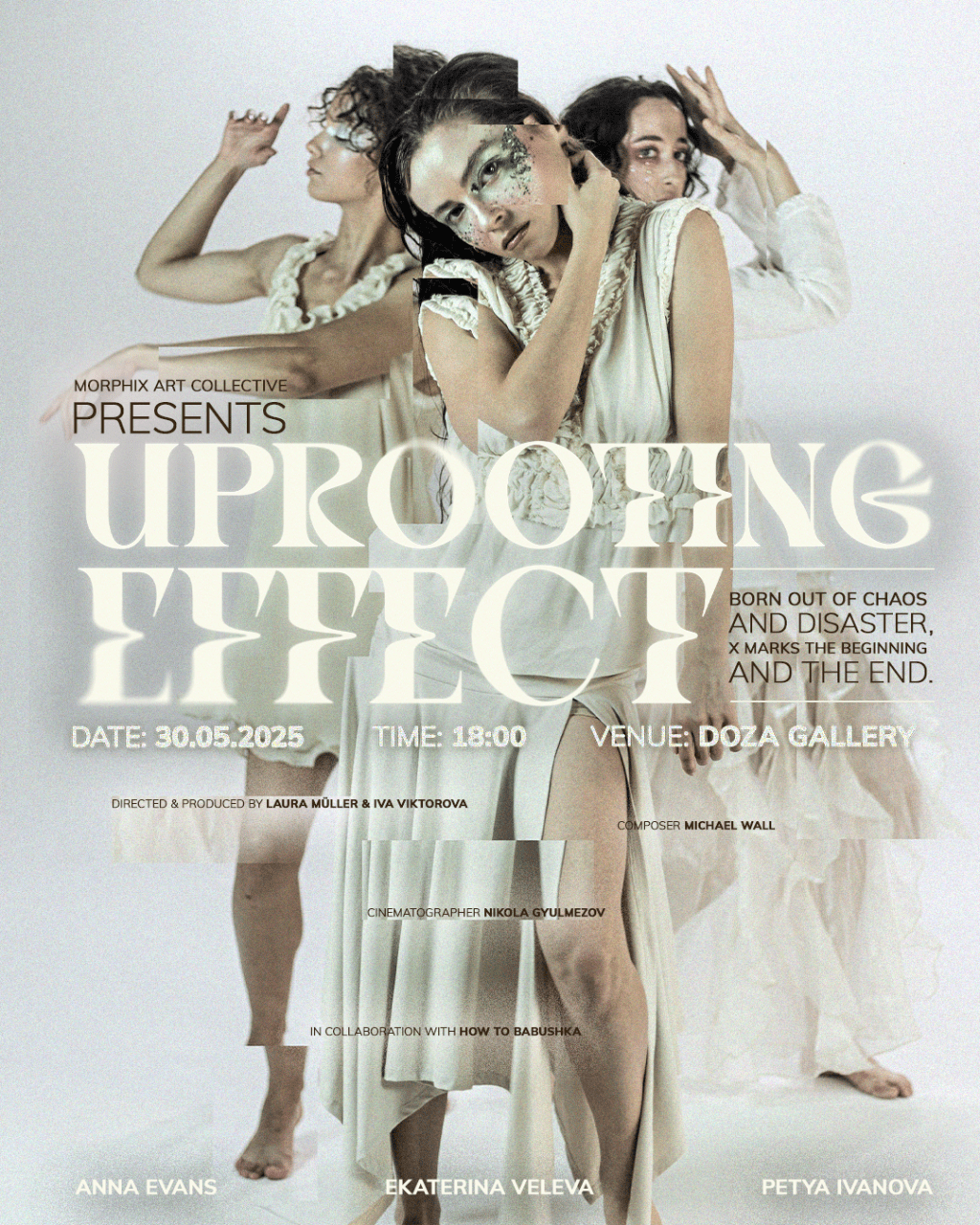 Пригответе се да навлезете в свят, в който движението се превръща в мит, а символиката оживява. Uprooting Effect (2025) e дебютният късометражен танцов филм на Ива Викторова и Лаура Мюлер, който ще има своята премиера на 30 май в галерия Доза. Проектът бележи първото кинематографично творчество на MorphiX — международен артистичен колектив, създаден от Ива и Лаура, в подкрепа на нови и независими артисти от цял свят.