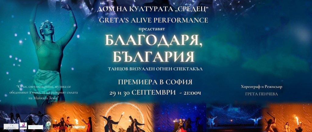 Танцова еуфория очаква столицата в края на месеца. На 29 и 30 септември в Дом на културата “Средец” от 21:00 ч. ще се проведат премиерните представления на спектакъла „Благодаря, България“.